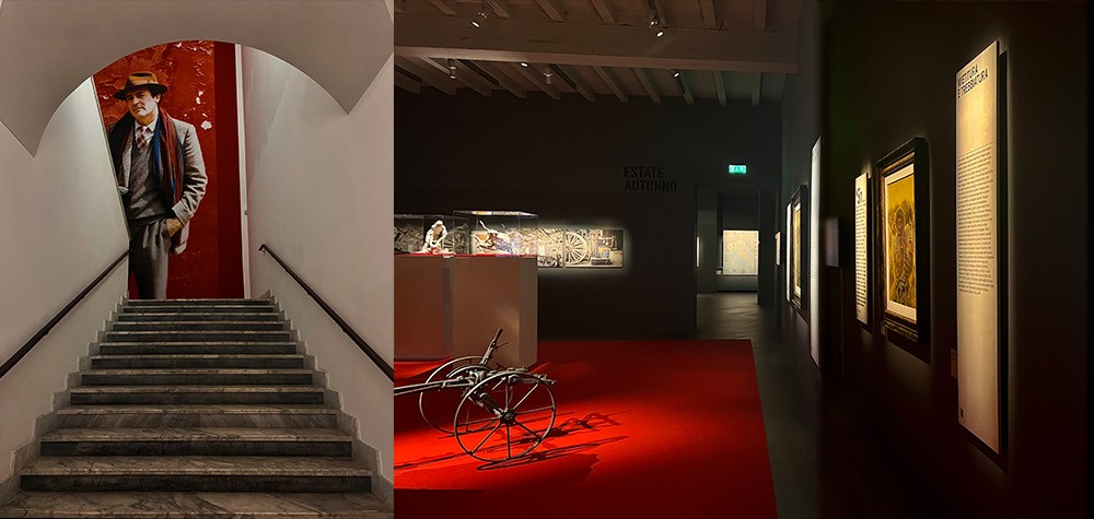 In occasione dei cinquant’anni dalla presentazione al 29° festival di Cannes, nel maggio del 1976, una mostra per celebrare l’opera cinematografica NOVECENTO di Bernardo Bertolucci a Parma. Il regista ha dichiarato a più riprese di aver voluto fare un film sul tempo – ma sul tempo come? Raccontare la vita dei «paesani» significa infatti adeguare almeno in parte la narrazione a un ritmo lento, con pochissime scosse, inscritto nel susseguirsi sempre uguale delle stagioni con i loro passaggi obbligati: l’estate con la mietitura e la trebbiatura del grano, l’autunno con l’aratura e la semina, l’inverno con l’uccisione del maiale, la primavera, quando le uova dei bachi da seta si aprono allo spuntare delle prime foglie dei gelsi liberando le loro minuscole larve.